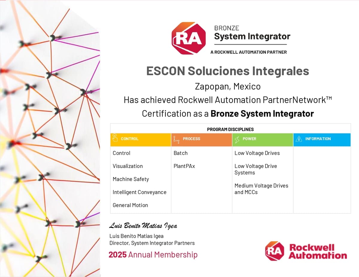 Nuestra certificación como System Integrator de Rockwell Automation es un testimonio de nuestro compromiso con la excelencia y la innovación.